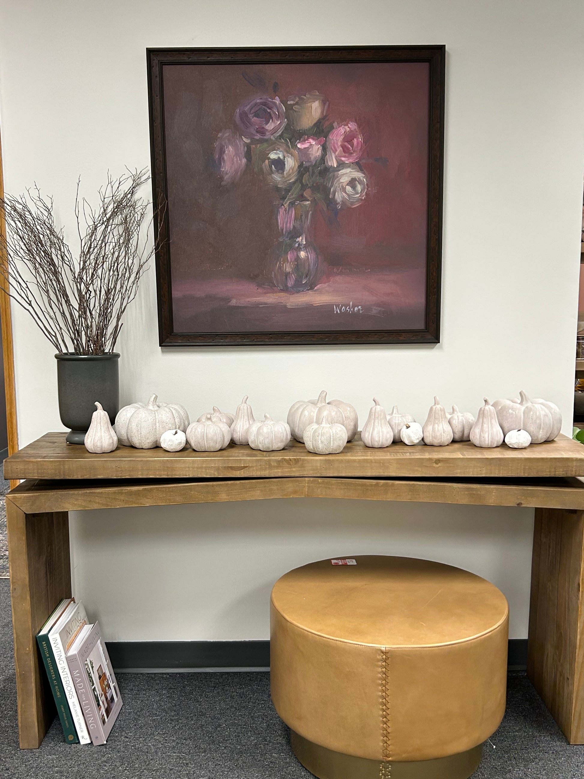 Stoneware Pumpkin, Reactive Glaze, Cream Color Speckled (Each One Will Vary)